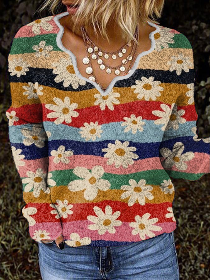 Casual Wave Collar Printed Plush Top