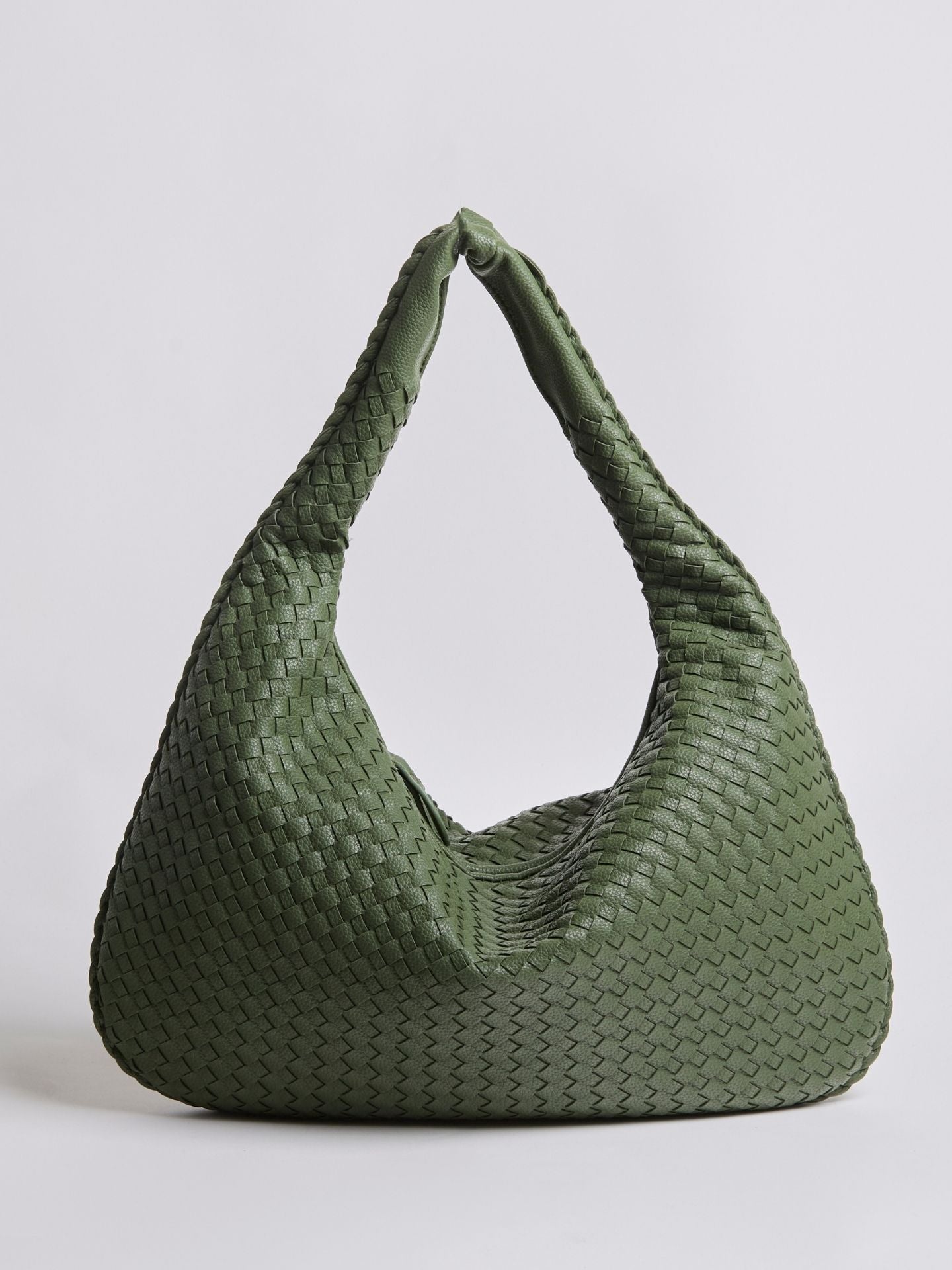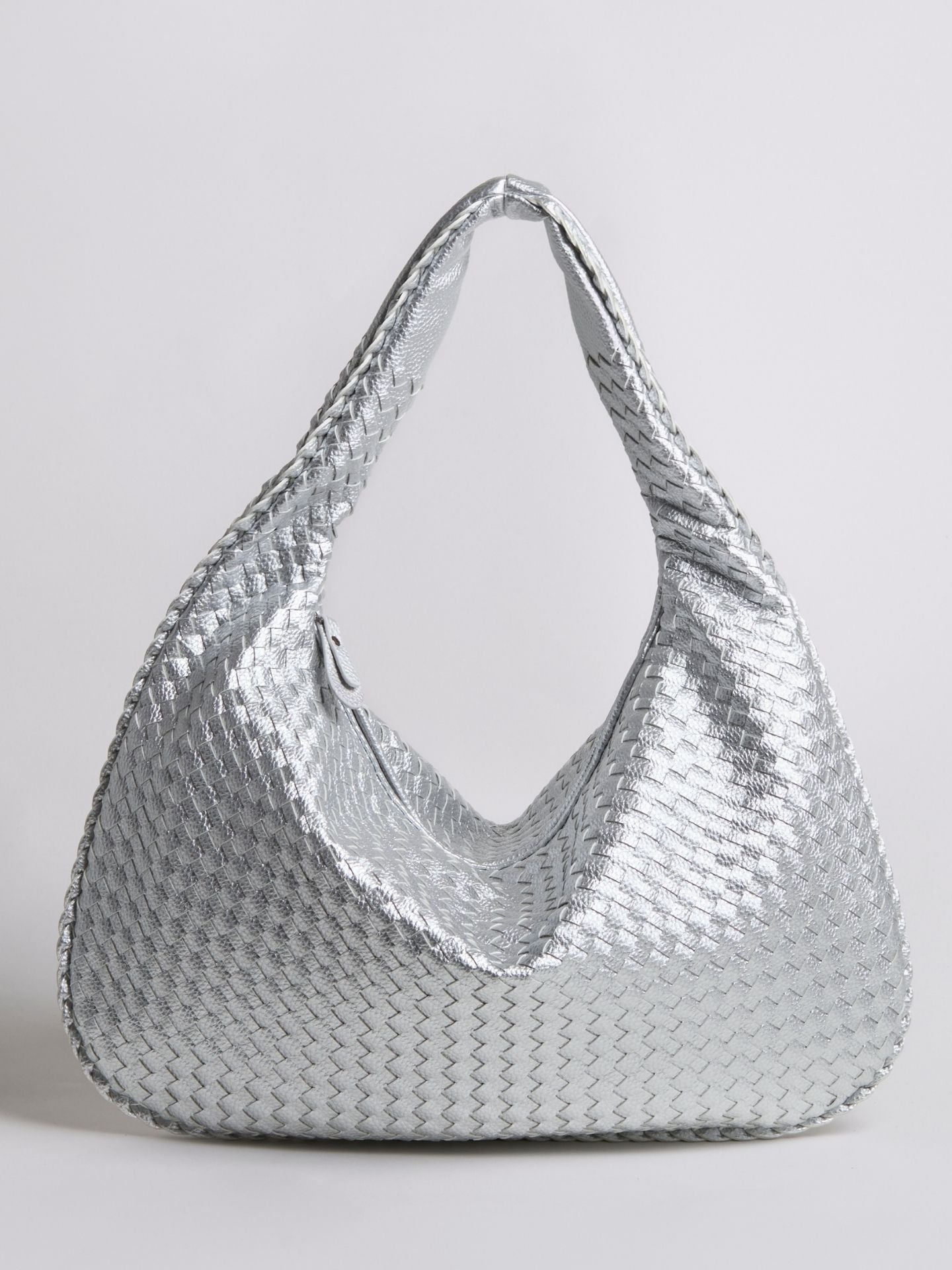 - Shoulder bag with semi-circular shape and braided design