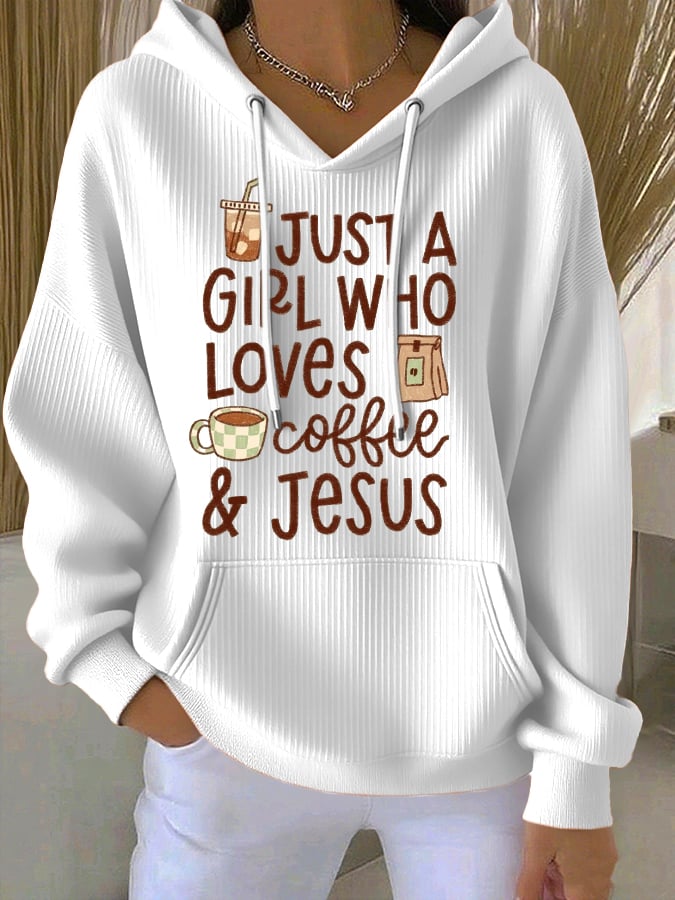 Women's Faith Coffee Print Casual Hooded Sweatshirt